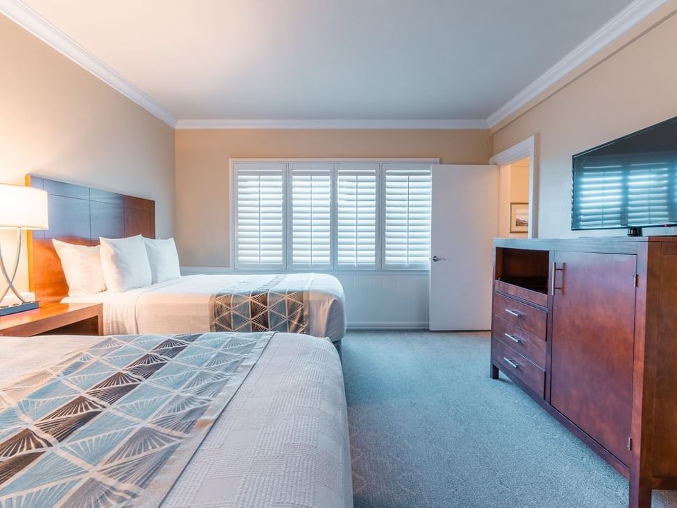This non-smoking room is appointed with one bedroom with one King bed with flat screen television and a second bedroom with two Queen beds and flat screen television.